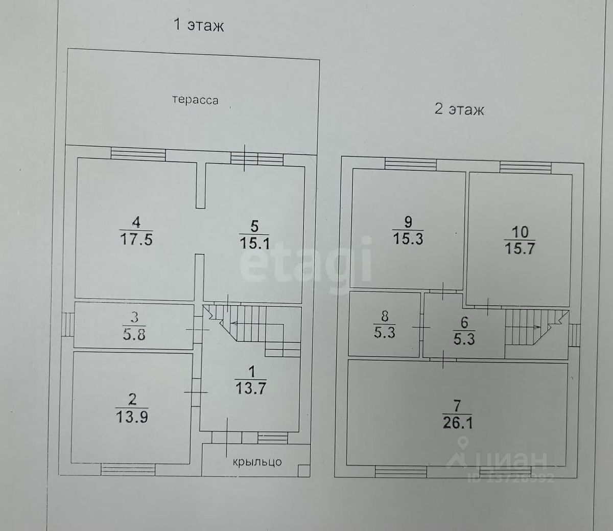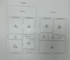 2 этаж- 3 комнаты-26,1 м2,15,3 м2,15,7 м2, сан.узел-5,3 м2, коридор-5,3 м2.