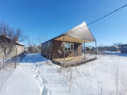 Для расширения пространства отдыха предусмотрена открытая деревянная веранда размером 2,56 метров, расположенная на западной стороне строения. Здесь удобно проводить теплые летние вечера, наслаждаясь свежим воздухом и природой.