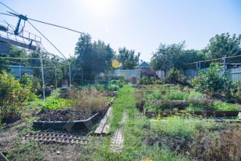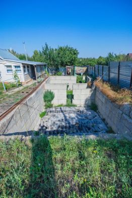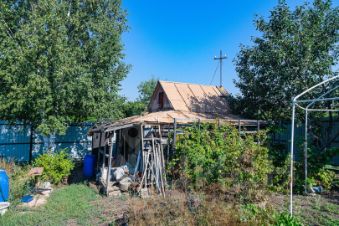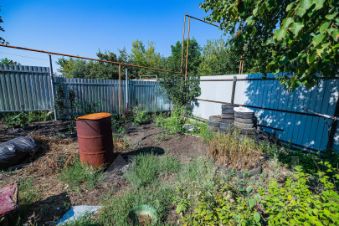 Участок прямоугольной формы под небольшим наклоном, огорожен забором из профнастила. Имеются 2 входа на противоположных концах участка. На территории (помимо дома и дачи) имеется сарай, а также заложен фундамент под строительство дома. Земля, где дача, разработана под огород. На участке произрастают яблоня, абрикос, вишня, слива, грецкий орех, малина, смородина, крыжовник, хвоя.