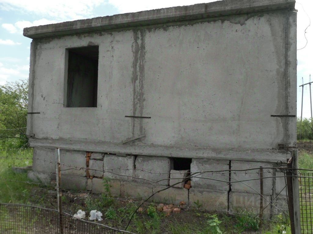 На участке недостроенный дом из жб плит, крыша есть.