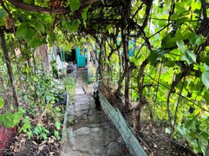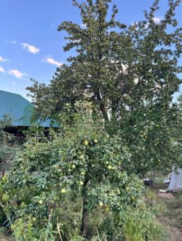 **Площадь участка:** 13,5 соток . Есть выровненная площадка под две машины, для размещения бассейна. На участке растут плодовые деревья и кустарники: яблоня, груша, слива, абрикос, орех, виноград.