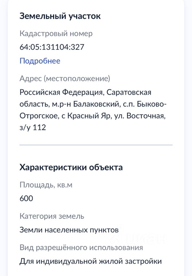 Адрес: Саратовская область, Балаковский район, Быково-Отрогское сельское поселение, с. Красный Яр, ул. Восточная, участок 3/у 112.