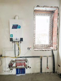 Газ: Отопление: 2-х контурный котёл Mizudo M13T, с технологией HotRestart — мгновенный нагрев воды, экономия энергии до 25%.