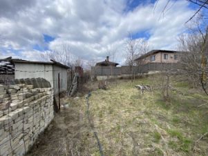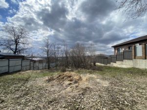 Участок с уклоном, соседи с обеих сторон имеют такой же уклон, который грамотно обыгран. Забор с трех сторон есть, соседи уже отстроили свои дома. Напротив участка также расположен дом. Большая часть СНТ застроена домами.