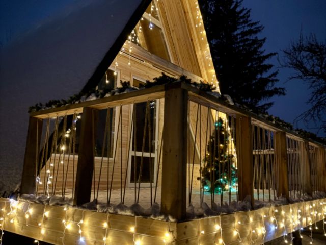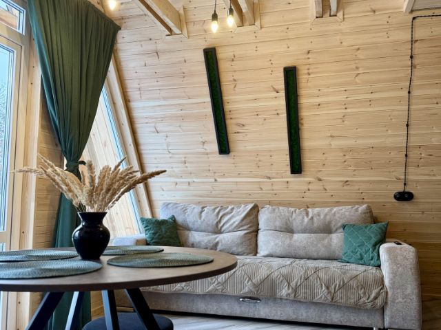 В доме раскладной диван в основной комнате 160*200 с набором чистого белого постельного белья, теплым одеялом, и уютным пледом.