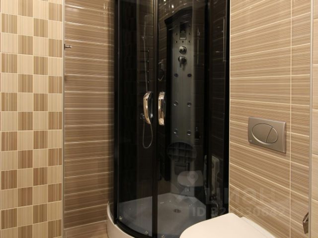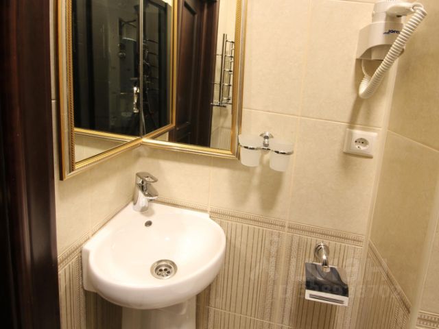 Ванная комната: современная сантехника, душевая кабина и джакузи, фен, халат, махровые полотенца и эксклюзивный набор личных принадлежностей.