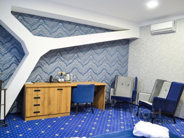 Гостиница в центре Вольска, напротив Троицкого Кафедрального Собора. Здание отеля является архитектурным памятником и расположено в исторической части города. В 7-8 минутах ходьбы от гостиницы находятся Городской парк и Музей военной техники. До набережной реки Волги и городского пляжа можно дойти за 15 минут. Расстояние до железнодорожной станции составляет 8 км, до ближайшего аэропорта в г. Саратов — 125 км. В отеле 14 номеров различной категории, каждый из которых оснащен телевизором с кабельными каналами, кондиционером, холодильником, мини-баром, сейфом, телефоном, рабочей зоной, шкафом для одежды, а также собственной ванной комнатой с комплектом полотенец, туалетно-косметическими принадлежностями и феном. Ежедневно для гостей сервируют континентальный завтрак. На территории отеля имеется охраняемая парковка для автомобилей. Удобства: Сейф, Кондиционер, Рабочий стол, Гладильные принадлежности, Отопление, Деревянный/Паркетный пол, Шкаф/гардероб, Душ, Ванна, Фен, Бесплатные туалетные принадлежности, Туалет, Ванная комната, Тапочки , Ванна или душ, Телевизор, Телефон, Кабельные каналы, Телевизор с плоским экраном, Мини-бар, Холодильник, Полотенца, Белье постельное Бесплатный Wi-Fi во всех номерах. Площадь номера: 40 м² Размер кровати/-ей: 1 односпальная (96190), 1 Queen Size (160200).