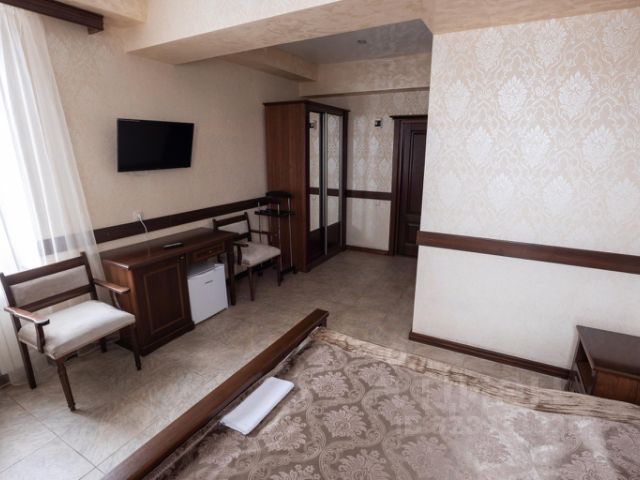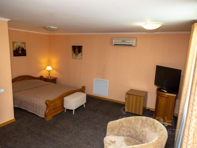 Гостиница удобно расположена недалеко от центра города в тихом месте. До гостиницы можно быстро доехать, минуя перегруженные центральные магистрали. В шаговой доступности находится крупный торговый центр "СИТИ МОЛЛ" с 5-ю кинозалами, в 100 метрах находится Областной кардиохирургический центр. Для гостей, прибывших на личном автотранспорте в город Саратов, при гостинице имеется парковка. В гостинице 28 уютных номеров. В номерах имеется все необходимое для комфортного отдыха. Благородная дубовая мебель создаст уютную обстановку. Все номера оснащены кондиционером, имеют отдельную туалетную комнату с ванной и феном. К услугам наших гостей телефон, телевизор, холодильник, интернет. На территории отеля располагается открытый летний бассейн с зоной кафе и бара. Есть термальный и банный комплекс для небольшой компании. Ресторан и кафе при гостинице предлагает отменную европейскую кухню для наших гостей. Отдых в ГК Саратовский подарит вам настоящее удовольствие. На ваш выбор множество услуг для вашего отдыха, здоровья, тела и души. В номере установлена большая двуспальная кровать, прикроватные тумбы, телевизор, сплит-система, телефон, холодильник, мини-бар, интернет. В ванной комнате установлена ванная, туалет, раковина.