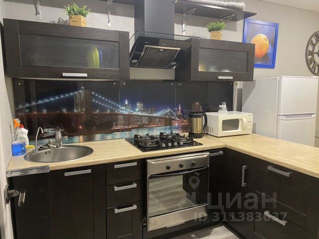 В квартире есть все для комфортного проживания: кухонный гарнитур, кухонный стол со стульями, вытяжка, встроенная варочная панель, микроволновая печь, холодильник, чайник, вместительный комод, 3-х створчатый шкаф для одежды, журнальный столик, стиральная машина-автомат, сплит-система, телевизор, диван, двухспальная кровать, письменный стол, стеллаж для хранения, оборудованный всем необходимым санузел.
