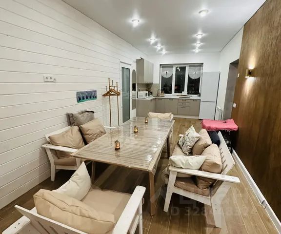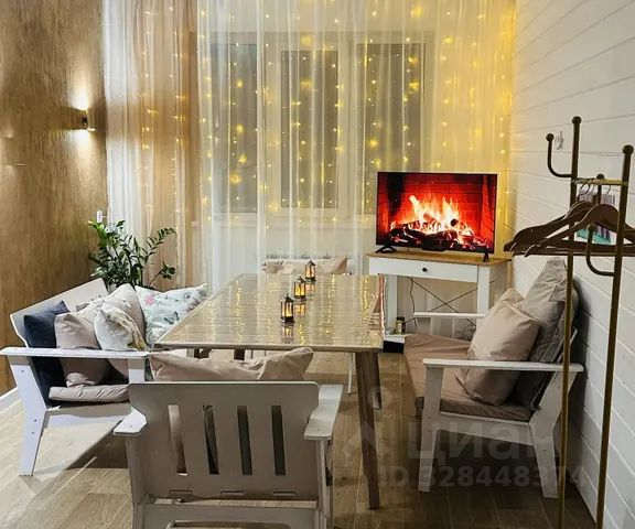 В гостиной на 1 этаже — кухонная зона, обеденный стол с удобными стульями, раскладной диван (160х200) с постельным бельём, телевизор, холодильник, вешалка для одежды и этажеркой для обуви, большое зеркало в полный рост, музыкальная bluetooth колонка с караоке и 2 микрофонами.